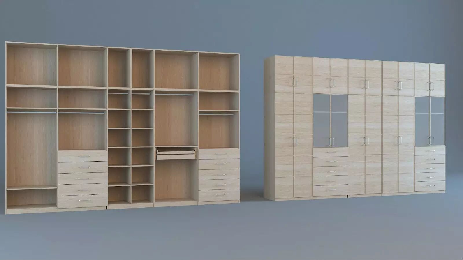 裤架,高800—1000mm。裤架专门用于悬挂裤子,不易起褶皱。挂杆到底板的距离不能少于600mm,否则裤子会拖到底板上。建议选购成品金属裤架,可以悬挂12条裤子;而一般工厂制作的裤架只能悬挂8—10条裤子。还可以安装一个挂衣杆,用衣架悬挂裤子,比较节省空间。