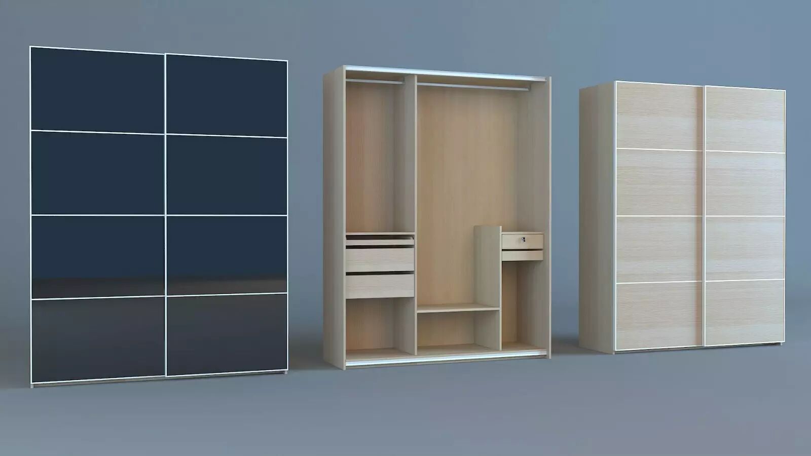 抽屉,宽400—800mm,高190mm。一般在上衣区下方设计3、4个抽屉,主要用于存放内衣。根据内衣卷起来的高度来计算,抽屉的高度不能低于190mm,否则闭合抽屉时容易夹住衣物。高200mm,才够放衣衫。